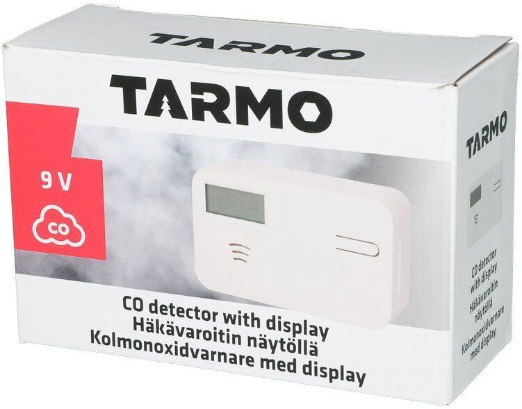Tarmo vingugaasiandur ekraaniga. Patareitoitel töötav vingugaasiandur digitaalse ekraaniga. Ekraan näitab vaheldumisi ruumi vingugaasi kontsentratsiooni ja temperatuuri. Kasutusiga 10 aastat. Vastab standardi EN 50291-1:2018 nõuetele.