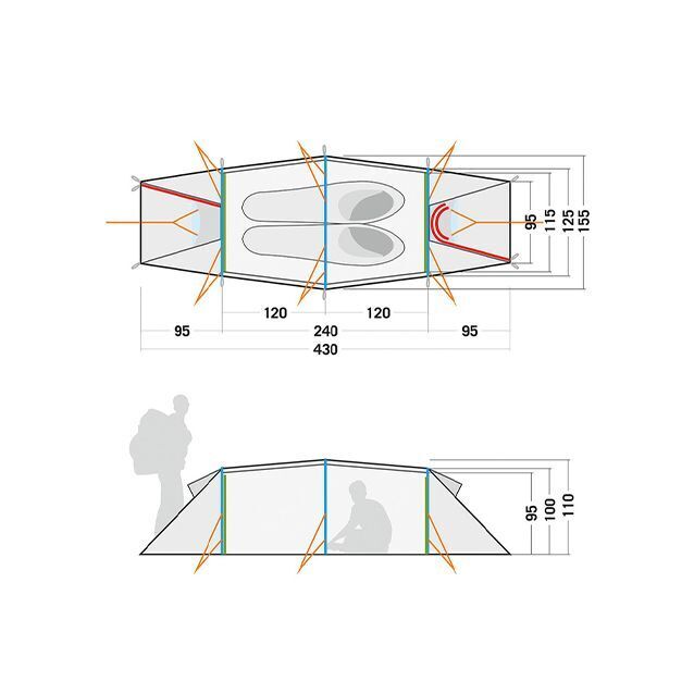 Teltan paino on 2,6 kg, minimipainon ollessa 2,4 kg, mikä tekee siitä helposti kantamuksen retkille. Tunnelimallinen rakenne kestää hyvin tuulta pituussuunnassa. Ulkoteltta on valmistettu 20 D Nylon 6 Ripstop Silicone -materiaalista, ja pohjan vedenpitävyys on 10 000 mm, mikä suojaa hyvin kosteudelta.