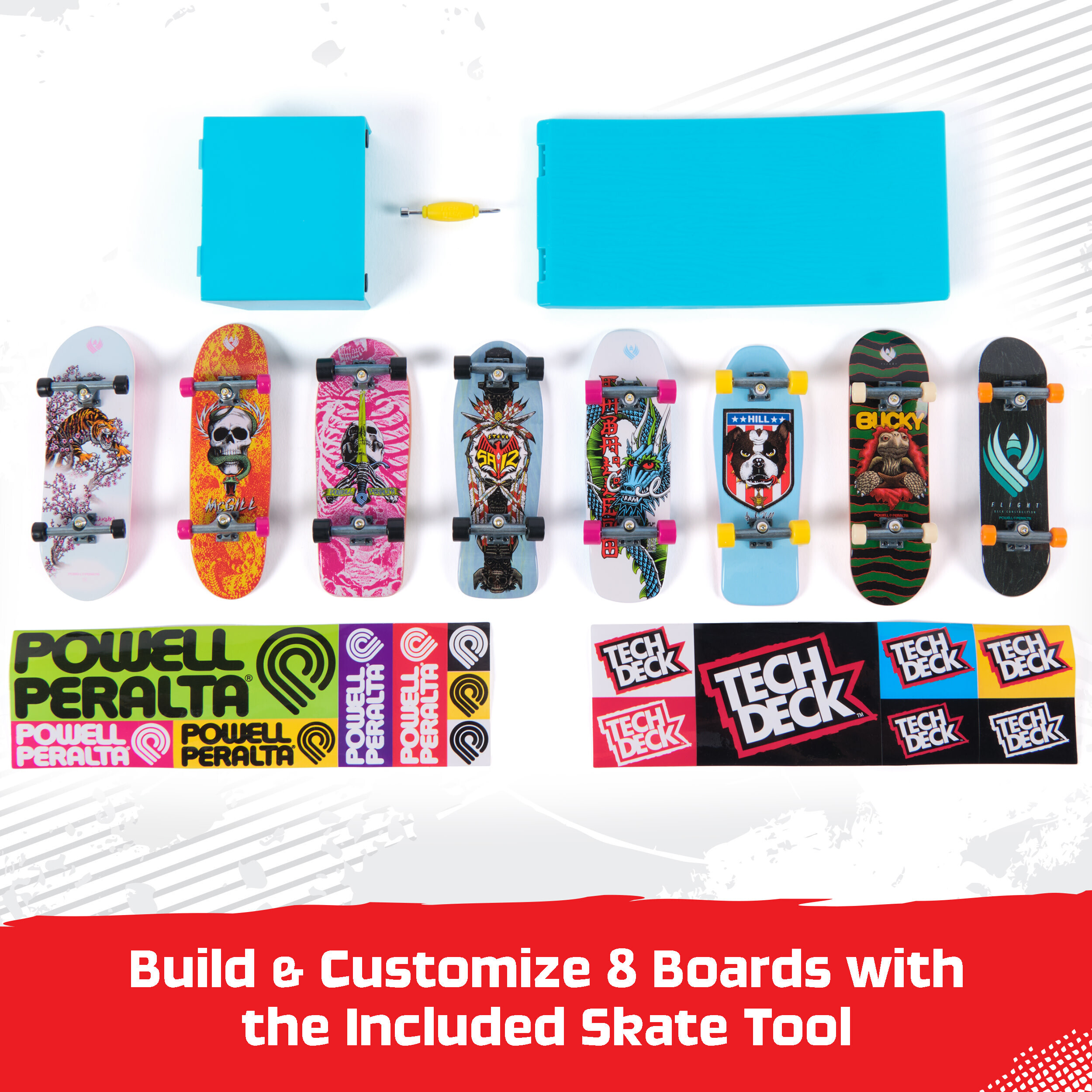 Litsentseeritud Tech Decki sõrmlauad jäljendavad rulamaailma suurimaid laudade tootjaid: Blind, Baker, Primitive, Finesse, Santa Cruz, Plan B, Sk8mafia, Tony Machine ja paljud teised. Iga sõrmlaud (96 mm) on kaunistatud ikooniliste tootjate teipidega, et need näeksid välja nagu päris laua miniatuurne mudel. Samuti saate oma lauakollektsiooni virtuaalselt vaadata Tech Decki veebisaidil (ING).