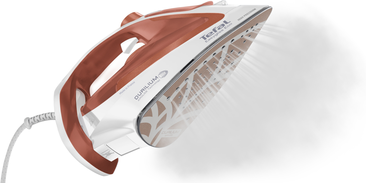• Kvaliteetne Durilium AirGlide® tald: Tefali parim libisevus, väga kriimustuskindel, kõik talla avad vabastavad aktiivselt auru, võimaldades aurul tekstiilil ühtlaselt ja tõhusalt jaotuda