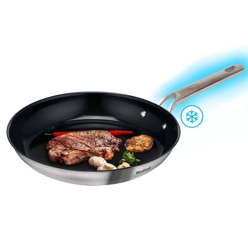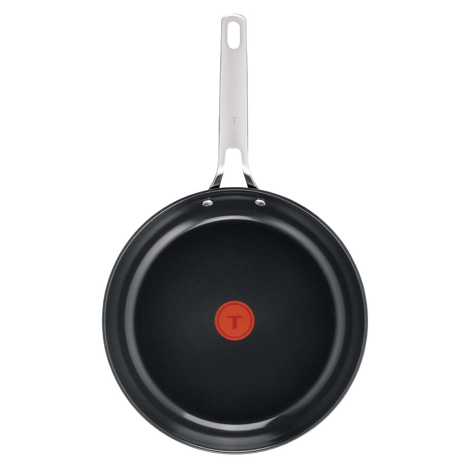 Tefalin Thermo-Signal™-lämpötunnistin näyttää, kun paistoastia on tarpeeksi kuuma kypsennyksen aloittamiseen. Kun astian keskellä oleva Thermo-Signal™-piste muuttuu täysin punaiseksi ja keskellä oleva T-kirjain häviää näkyvistä, on aika aloittaa kypsentäminen. Thermo-Signal™ näyttää siis käyttäjälle visuaalisesti, milloin oikea paistolämpötila on saavutettu. Monelle sopivan paistolämpötilan näkyminen tuotteen pohjalla on ollut yllättävän hyödyllinen ominaisuus. Tämä innovaatio takaa täydellisen paistopinnan, koostumuksen, värin ja maun. Ei enää arvailua – voit nauttia kokkaamisesta ilman huolia.