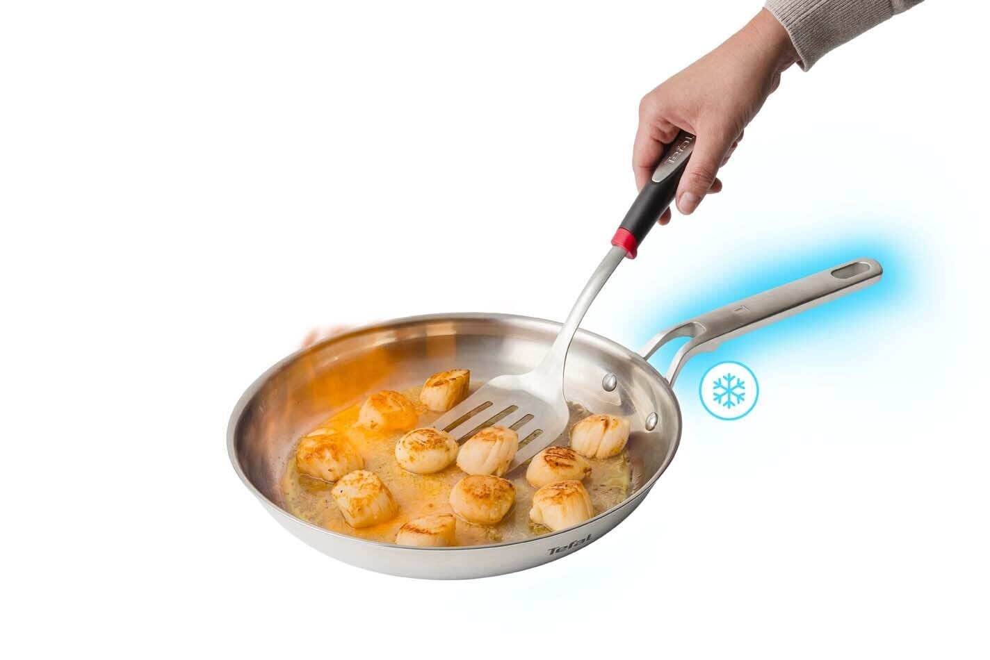 Esteettinen Tefal Extreme tuo ammattimaista ilmettä keittiöösi ja sopii tyylikkyytensä ansiosta myös ruoan tarjoiluun. Ergonominen teräskahva pysyy viileänä liedellä käytettäessä.