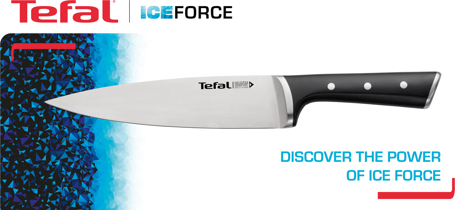 Pärast kuumutamist jahutatakse noatera temperatuurini -120 °C. See töötlus tagab tera hoolika viimistluse, mis parandab selle lõiketäpsust ja mugavust. See tagab ka, et nuga püsib kauem terav ja lõikab hästi, muutes toiduvalmistamise lihtsamaks ja kiiremaks. Tera jahutamine madalale temperatuurile suurendab selle tugevust ning muudab noa vastupidavamaks ja vähem kahjustustele vastuvõtlikuks. Lisaks parandab töötlus tera korrosioonikindlust, mis aitab pikendada noa eluiga ja säilitada selle välimust. Tefal Ice Force nugadel on kuni kaks korda suurem jõudlus võrreldes teiste Tefali roostevabast terasest nugade sarjadega.
