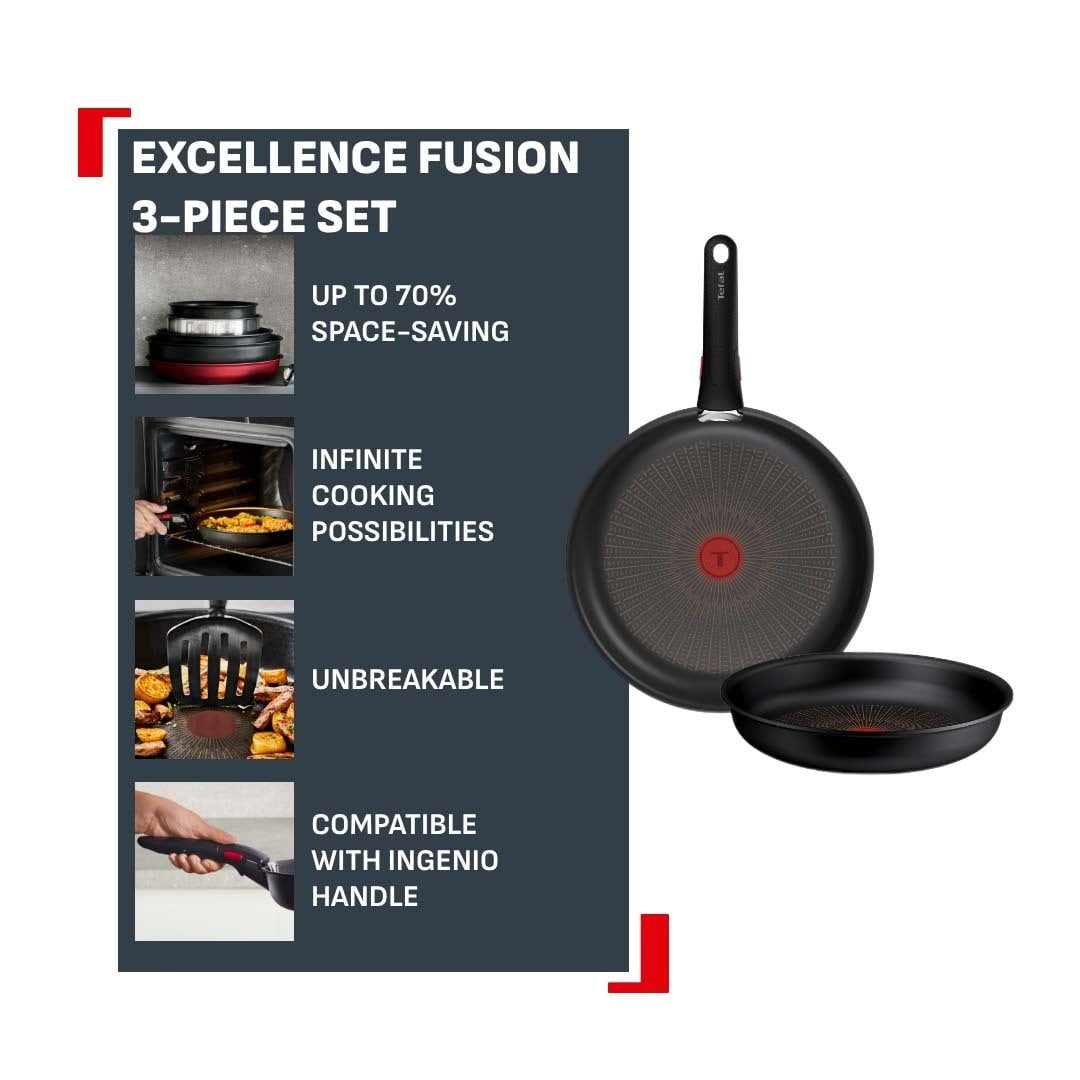 Tilaa säästävät Tefal Ingenio Excellence Fusion -keitto- ja -paistoastiat on tarkoitettu sinulle, joka kaipaat lisää tilaa ja järjestystä kaappeihisi sekä lisätilaa liedellä. Arvostat monikäyttöisiä ja laadukkaita tuotteita, jotka kestävät pitkään. Settiin kuuluu kaksi paistinpannua, 24 cm ja 28 cm, sekä irrotettava kädensija, jonka voi kiinnittää molempiin pannuihin.