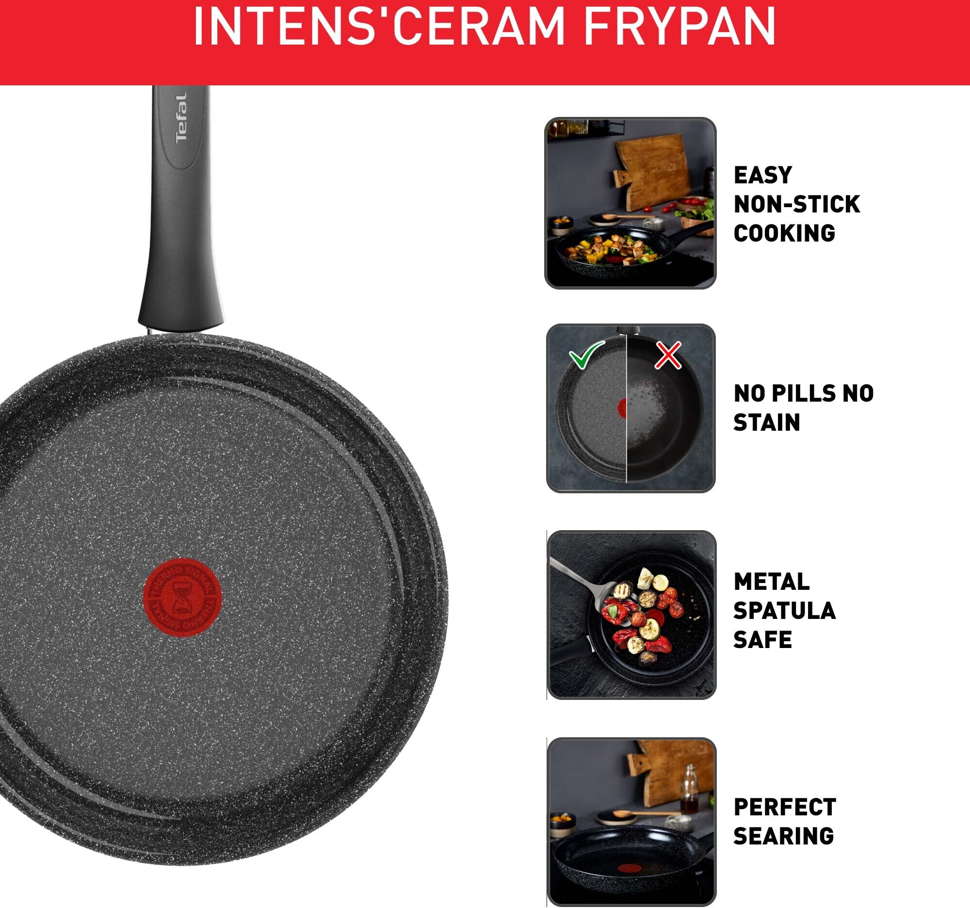 Tefal Intens’Ceram praepannil on keraamiline, mineraalidega tugevdatud Tefal InoCeram® kate, mis on 20 korda kõvem kui tavaline mittenakkuv kate. See on ka libisemiskindel, ohutu ja kergesti puhastatav. Lisaks on pannil Thermo-Fusion™ induktsioonpõhi ja Thermo-Signal™ soojusandur, mis näitavad kasutajale visuaalselt, millal on saavutatud õige praadimistemperatuur.