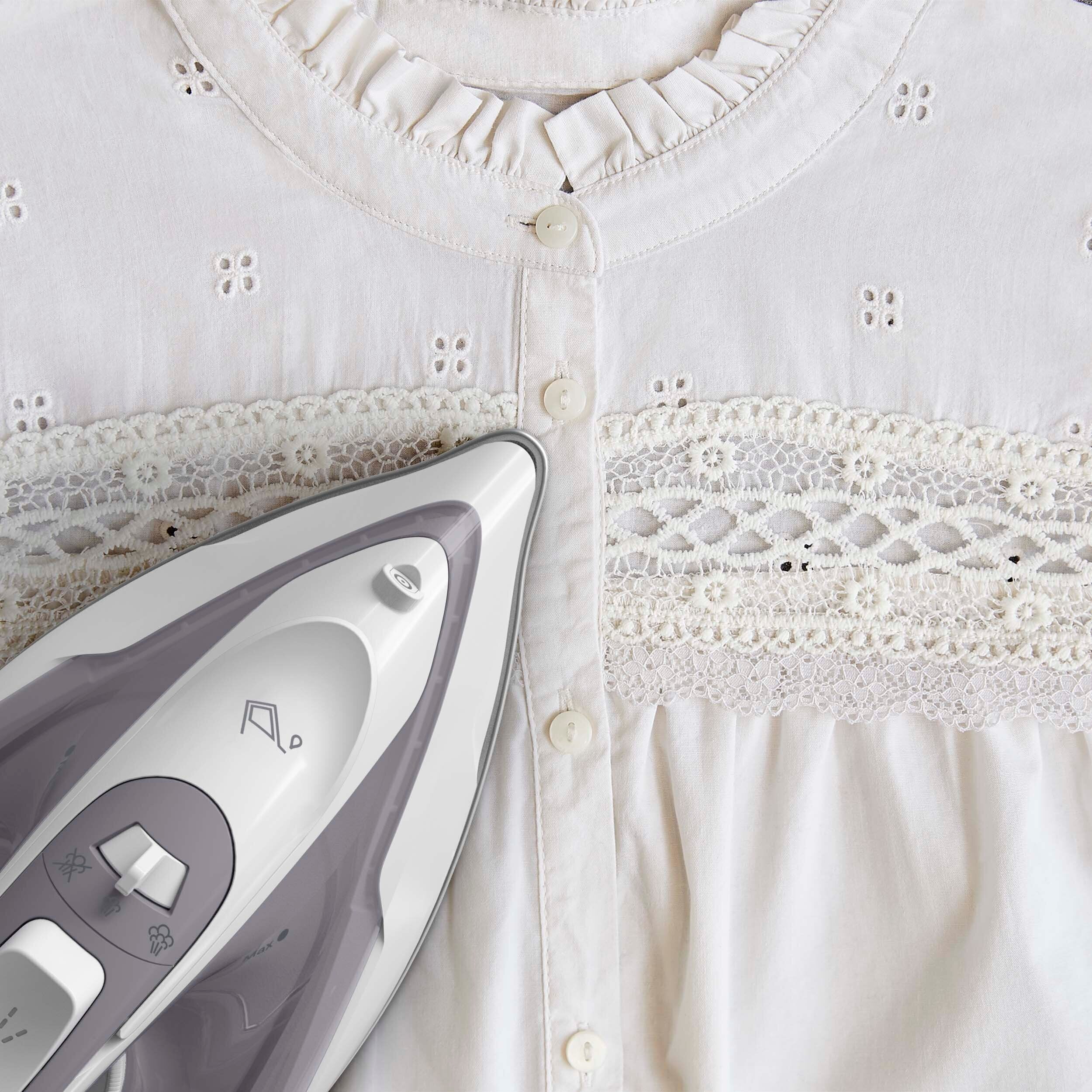 Kuumeneb 30 sekundiga ja toodab ühtlast auru, mis eemaldab tõhusalt kortse. Keraamiline tald libiseb sujuvalt ja vertikaalne aurutamine värskendab riideid hõlpsalt.