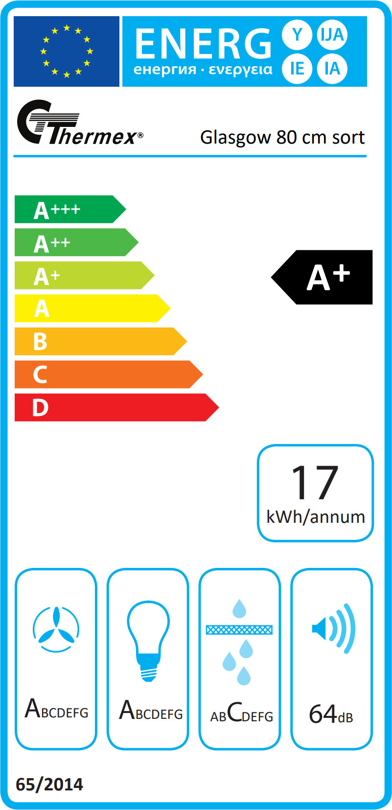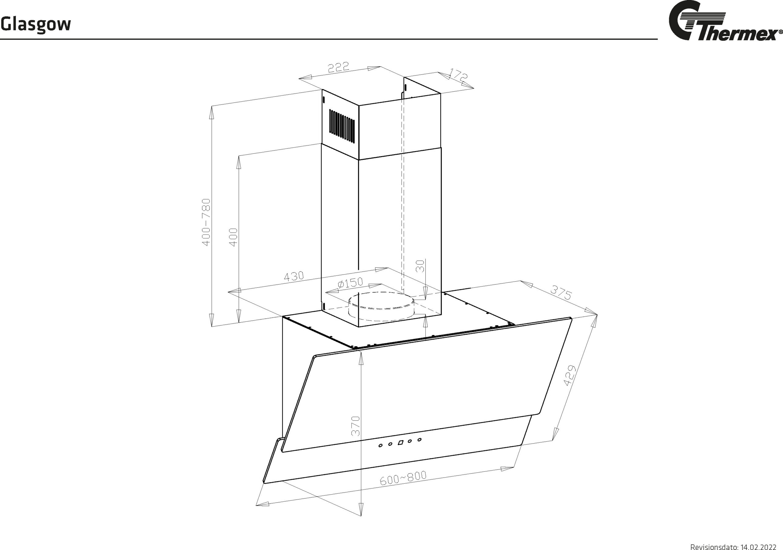 Thermex Glasgow on moodne vertikaalne pliidikubu, mis annab kokale pliidiplaadile täieliku vaate. Ventilaatori korpus ja kaitsetoru on valmistatud mustaks värvitud roostevabast terasest ning esikülg mustast klaasist. Glasgow pliidikubsil on hõlpsasti kasutatavad Glass Touch puutetundlikud juhtnupud, energiasäästlikud LED-tuled ja masinpestavad rasvafiltrid. Energiaklass A+.