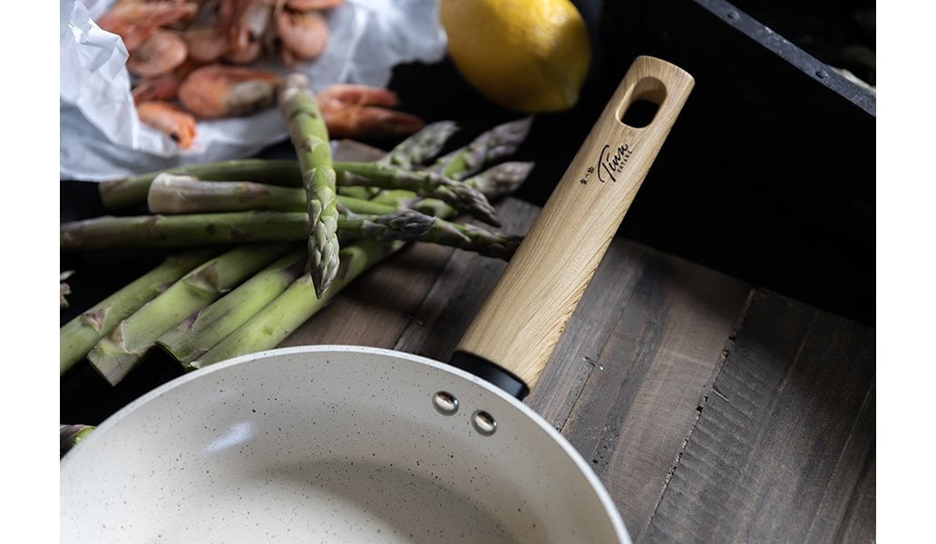 Kerge 24 cm praepann vastupidava keraamilise mittenakkuva kattega, mis on vaba PFAS-ühenditest ja raskmetallidest. Alumiiniumkorpus jaotab soojust ühtlaselt ja ergonoomiline pehme käepide tagab mugava haarde.