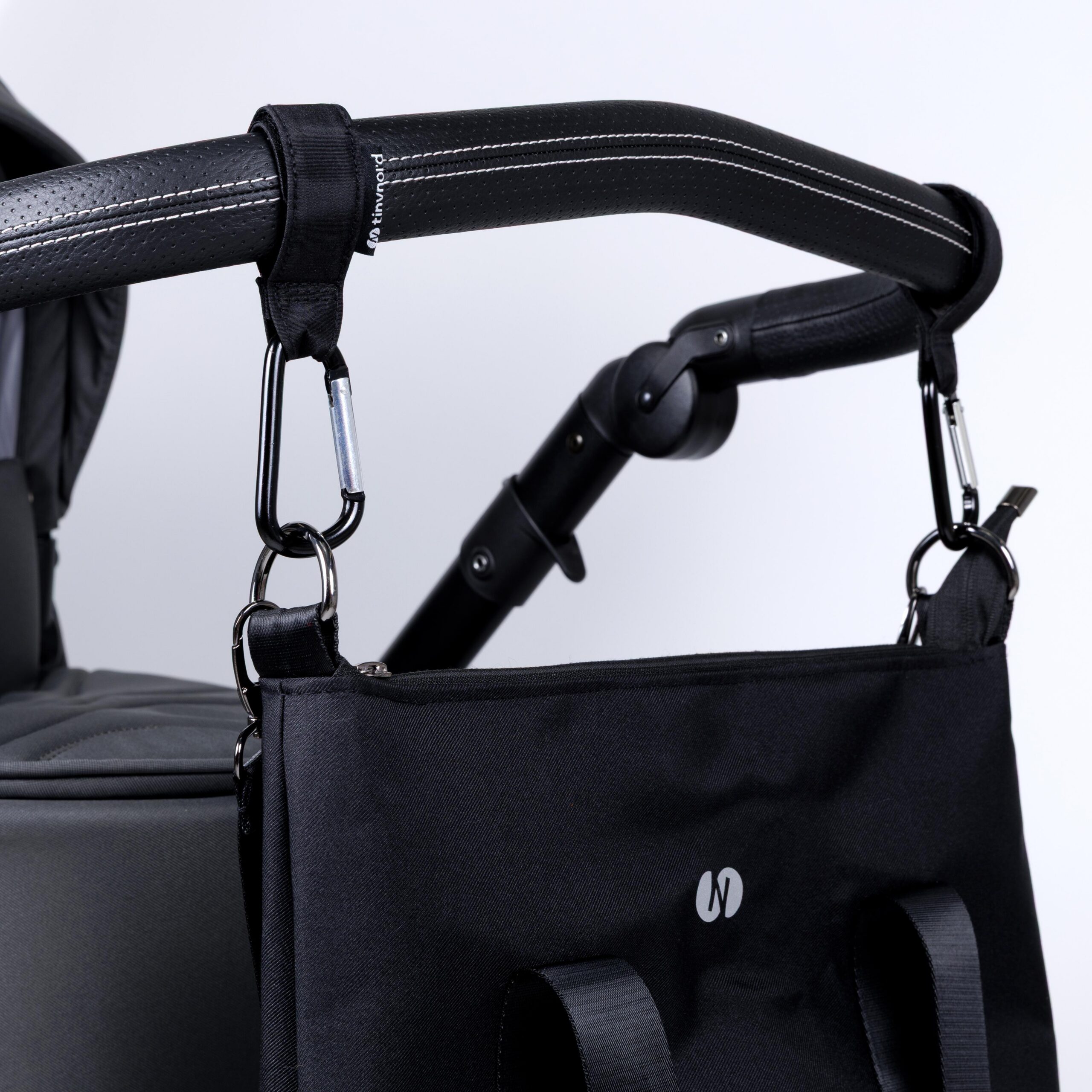TinyNord on suunnitellut hoitolaukun kuljettamisesta mahdollisimman vaivatonta. Leveä ja säädettävä olkahihna tarjoaa hyvän kantomukavuuden eri tilanteissa. Laukku kiinnittyy vaunujen työntöaisaan mukana tulevien koukkujen avulla, mikä vapauttaa kädet ja tekee liikkumisesta sujuvaa.