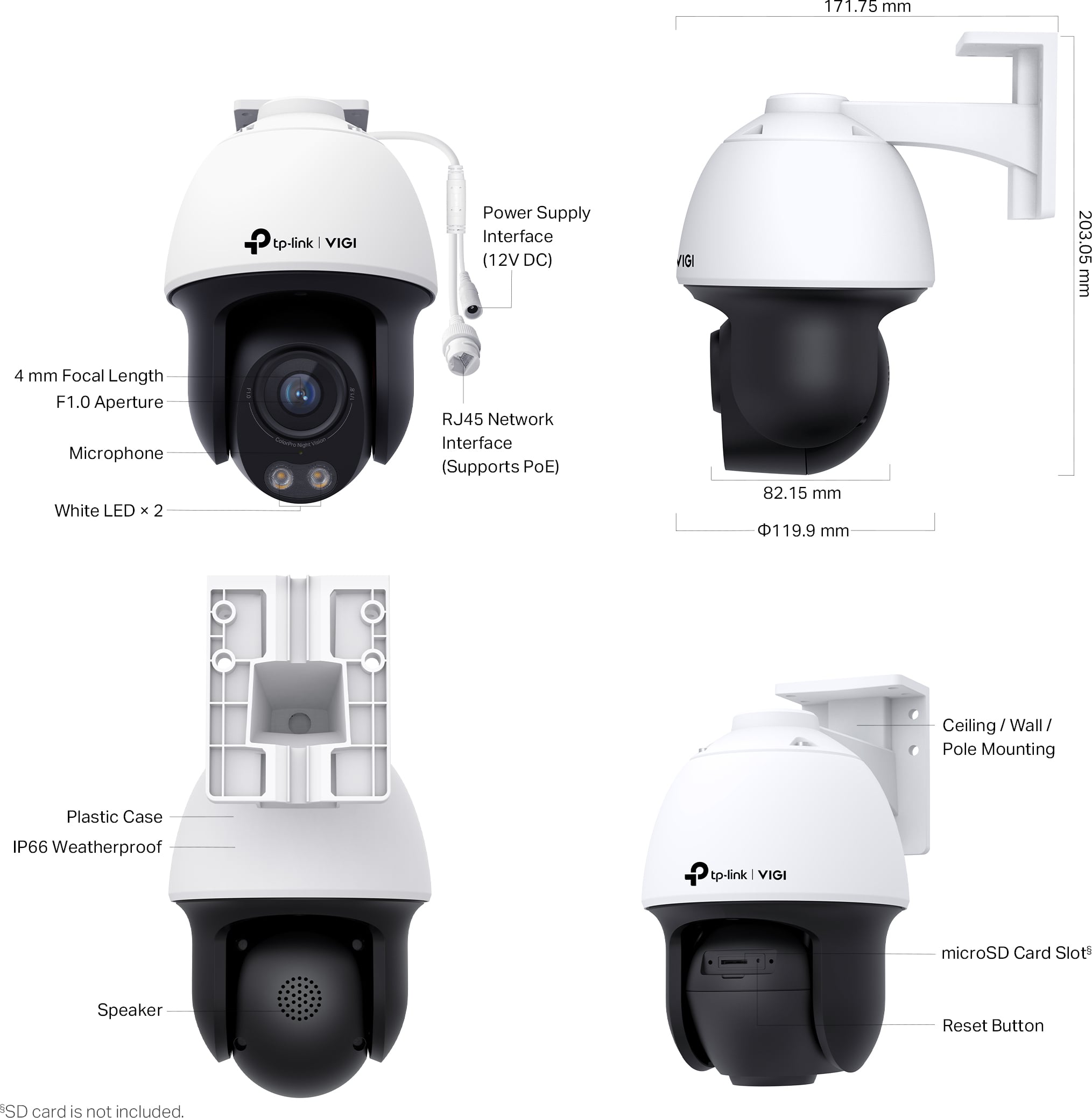 VIGI C540S tarjoaa kattavaa valvontaa ympäri vuorokauden sen huippuluokkaisen ColorPro Night Vision -teknologian ansiosta. Tämä kamera tuottaa terävää ja värikylläistä kuvaa jopa heikoimmissa valaistusolosuhteissa ilman lisävaloja, mikä tekee siitä erinomaisen valinnan ulkotiloihin. Innovatiivinen 360° pan/tilt-ominaisuus mahdollistaa täydellisen valvonnan ilman katvealueita, varmistaen, että mikään ei jää huomaamatta.