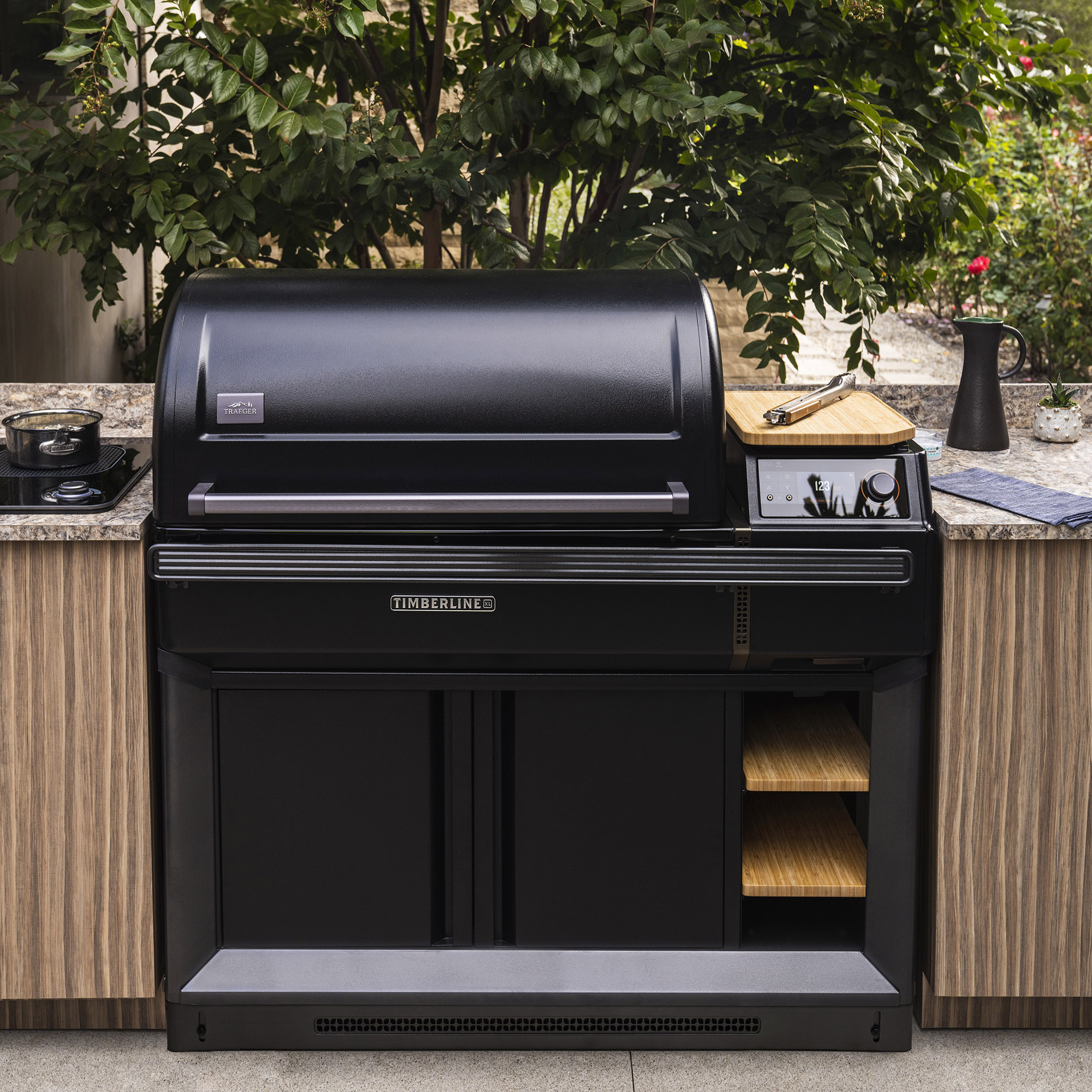 Traegeri väliköögi viimistluskomplekt, Timberline XL. Lõigake tükid, et teie Traeger Timberline XL grill teie välikööki sobiks. Traegeri sisseehitatud komplektiga on teie Timberline XL grill stiilne täiendus teie väliköögile.
