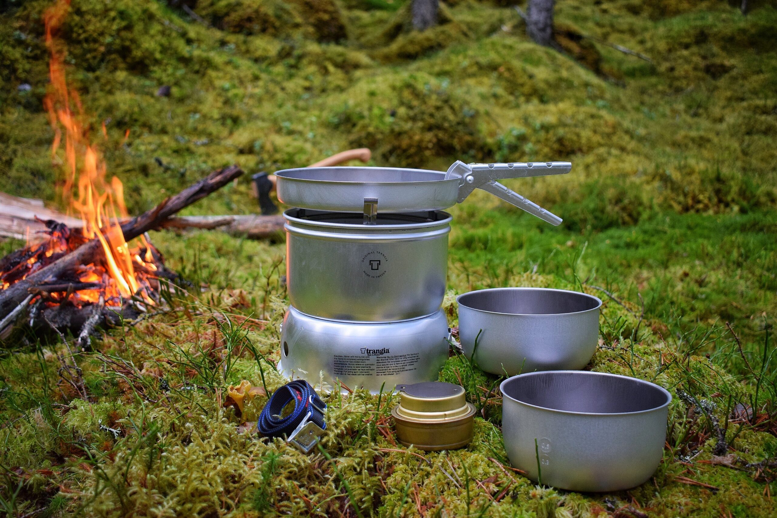 Ülikerge matkaköögikomplekt kogu perele. Köögitarvikutel on alumiiniumist väliskest ja vastupidav Duossal teraskate.