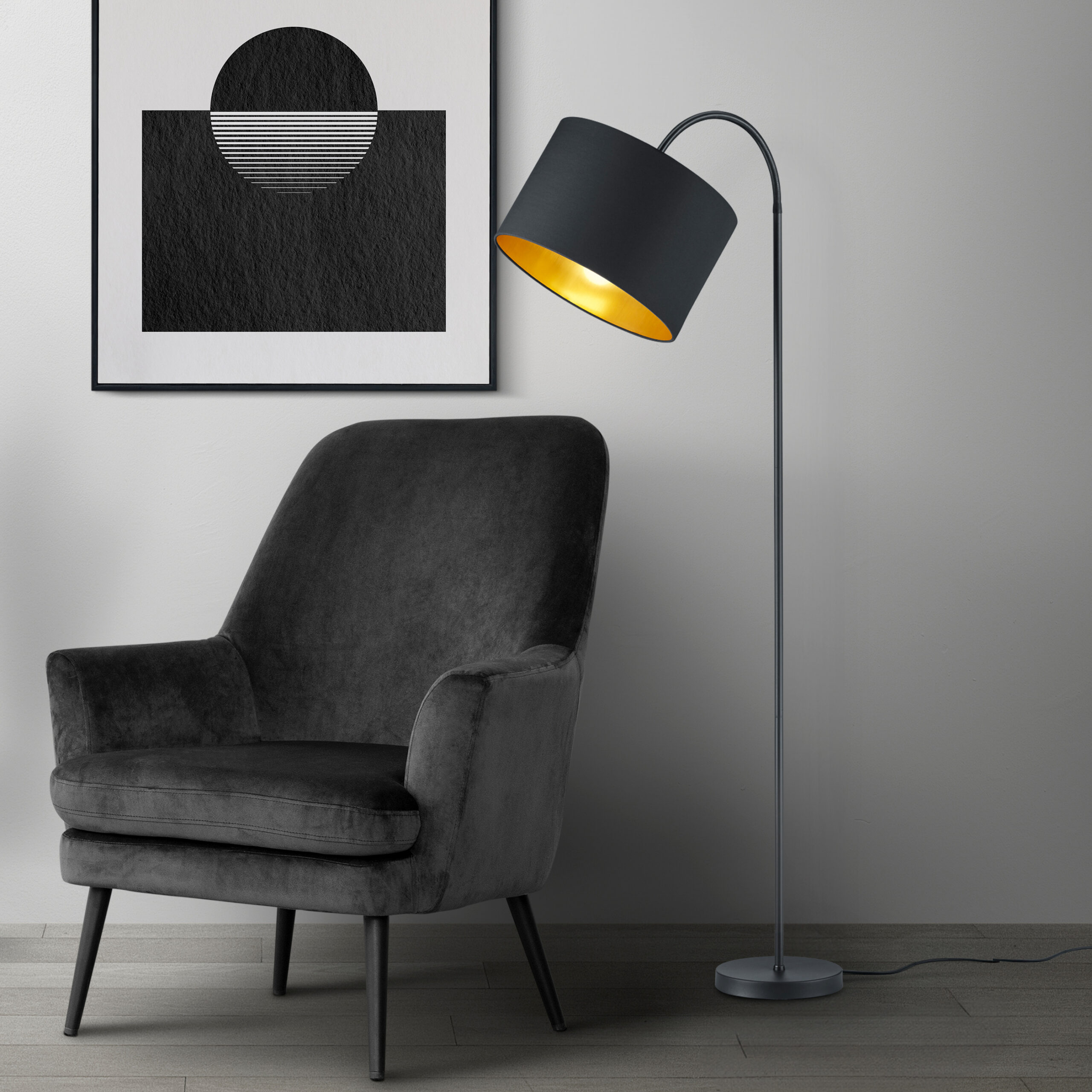 Trio Hostel -kaarpõrandalamp E27, matt must/kuldneTrio Hostel -kaarpõrandalamp E27, matt must/kuldne