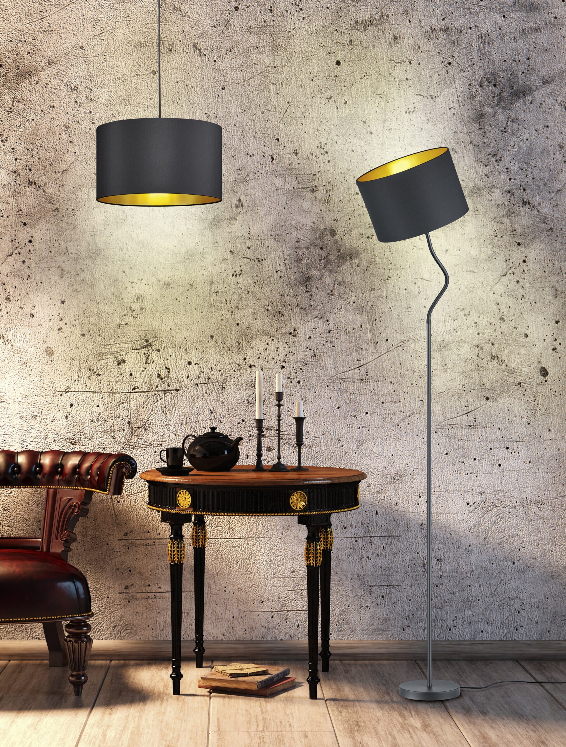 Trio Hostel -kaarpõrandalamp E27, matt must/kuldne