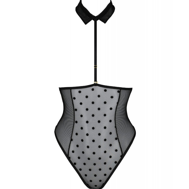 This sexy Trisha bodysuit is a proposal from the Passion brand, aimed at women who are aware of their body and their femininity. Perfect for any time and occasion when you want to have fun. The model presented completely exposes the breasts. Corset back trim increases comfort. A sexy and detachable neck-shaped choker adds overall character.