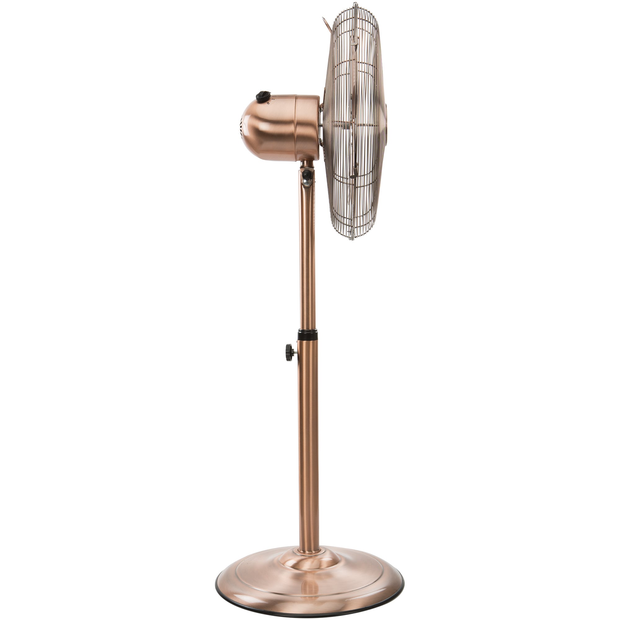 Metallinen kuparinvärinen tuuletin tuottaa tasaisen ja voimakkaan ilmavirran 40 cm:n halkaisijallaan. Sen korkeus ja kallistuskulma säätyvät portaattomasti, ja siinä on kolme nopeusasetusta sekä ylikuumenemissuoja.