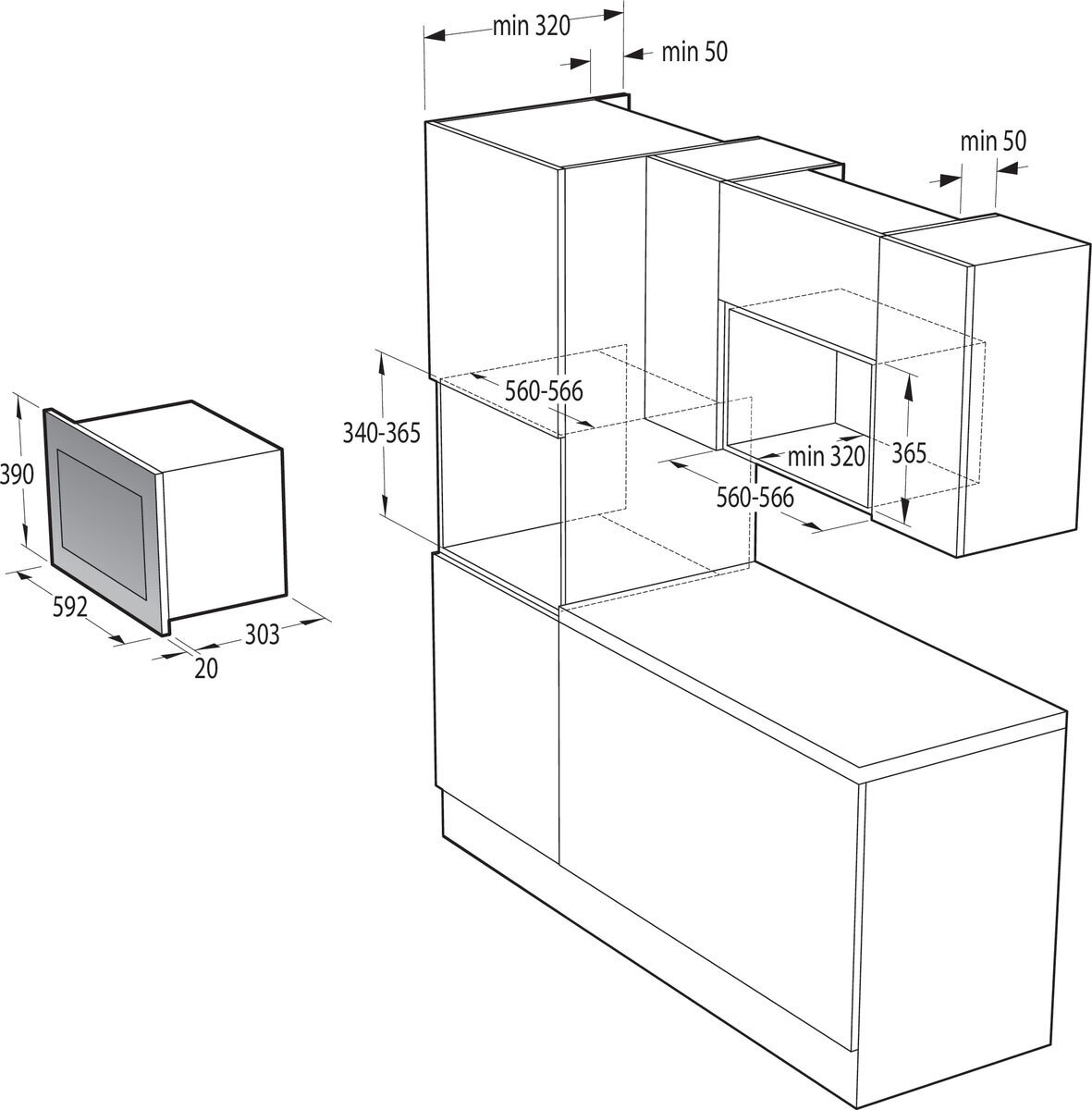 Mikrolaineahi, mida on lihtne kasutada ja puhastada mööbli sisse paigutamiseks. Mõõtmed K x L x S (mm): 390 x 595 x 320
