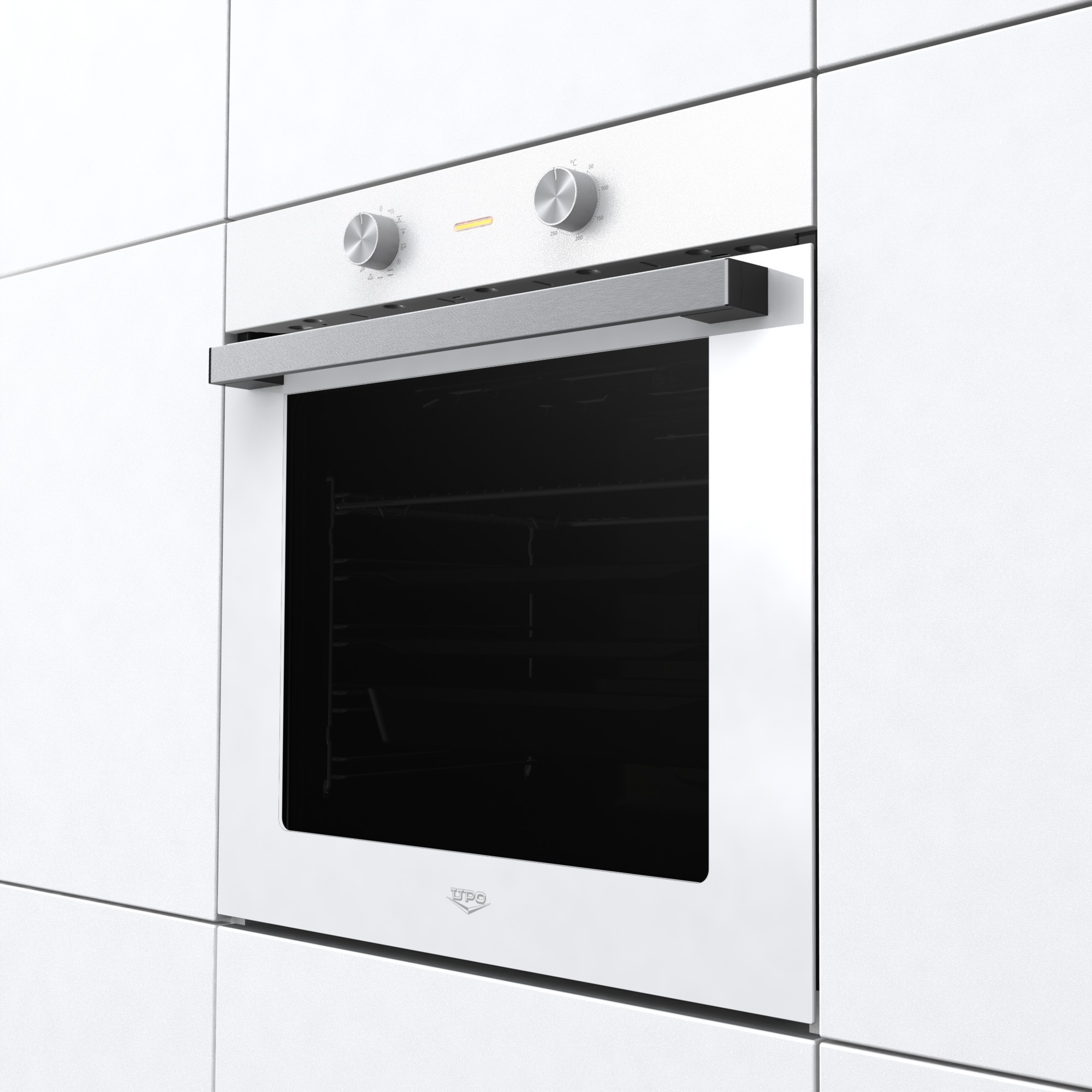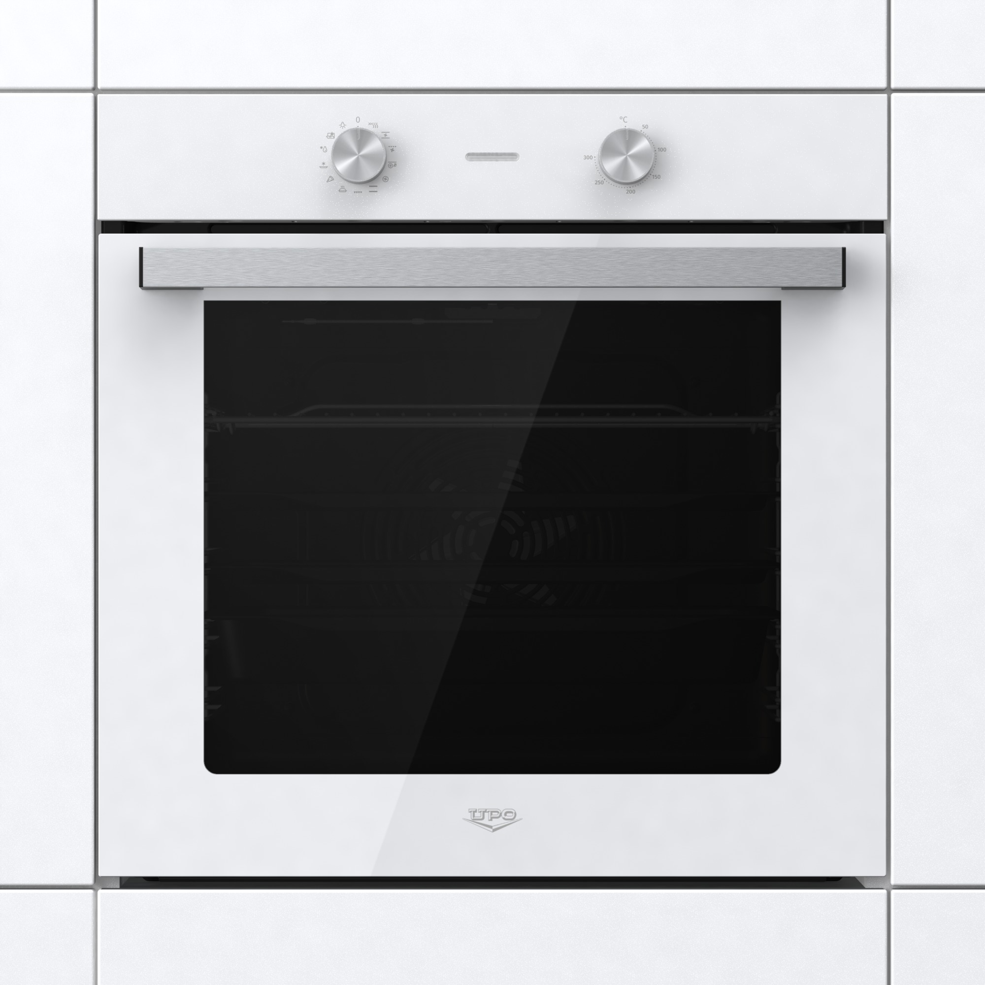 Valge Upo O717 on väga hõlpsasti kasutatav sisseehitatud ahi A-energiaklassiga. Tänu ahju võlvkujulisele kujule ja tõhusale õhuringlusele saate toitu hõlpsalt mitmel tasandil küpsetada. Küpsetage saiakesi korraga kuni neljal küpsetusplaadil. Tänu suurepärasele soojusisolatsioonile on ahju välispinnad alati ohutud puudutada, olgu selleks lapse käsi või koera koon. Ahjul on suur mahutavus 77 liitrit ja parim A-energiaklass. Lihtsalt kasutatavad nupud on ergonoomilised. Vajadusel saab ahjuukse klaasi puhastamiseks ka eemaldada. Ahi on varustatud eriti sügava küpsetusplaadi, kahe madala küpsetusplaadi ja restiga. Lapselukk on standardvarustuses ja vajadusel saab selle välja lülitada. Soovi korral saate reguleerida ka ekraani heledust.
