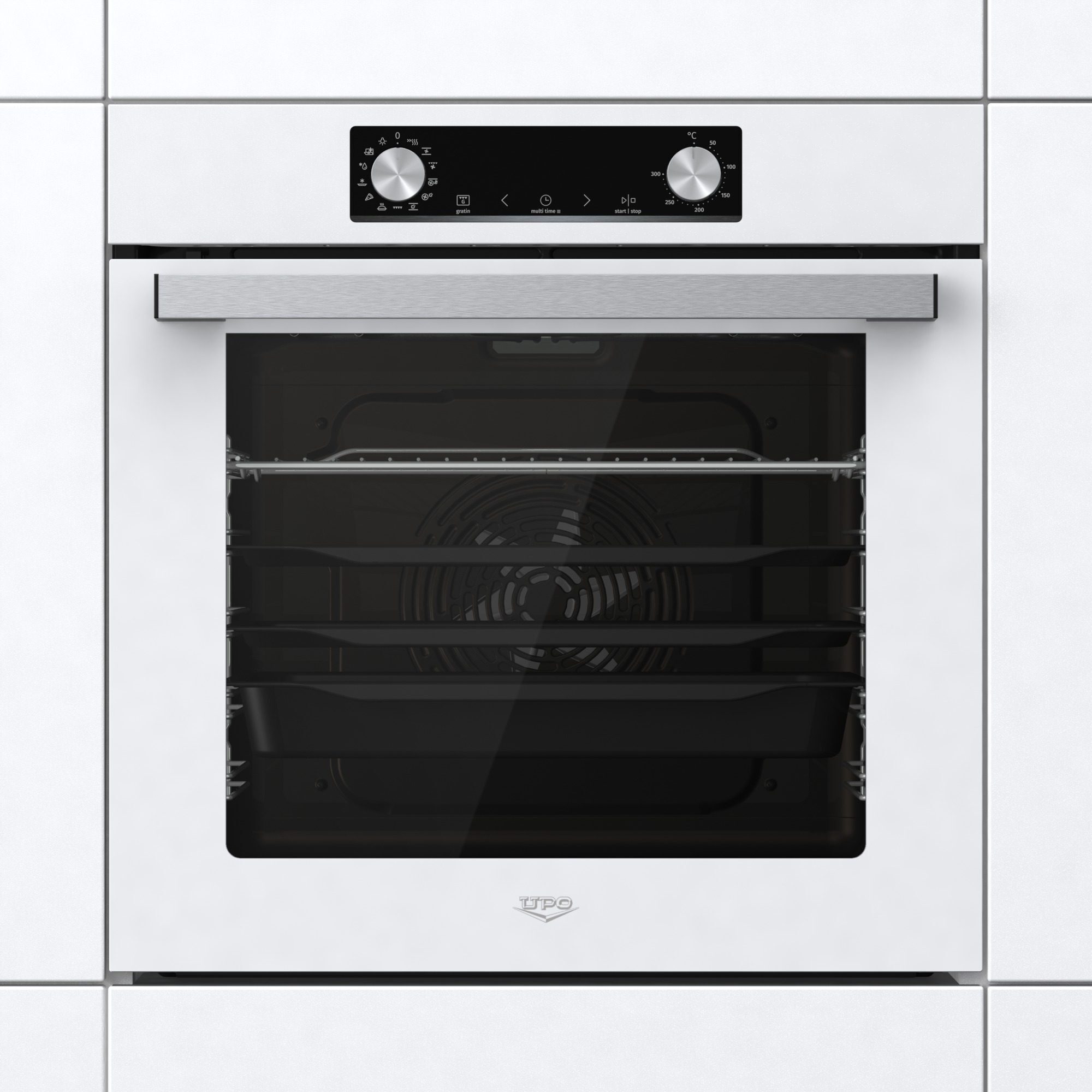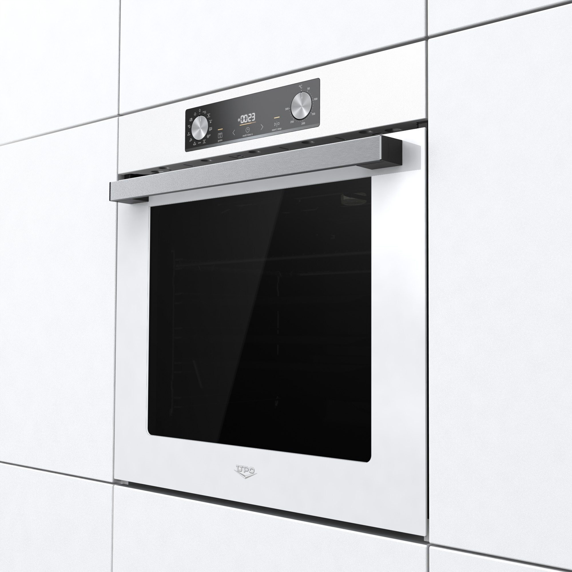 Valge ja tõeliselt vapustav Upo OPS737W on integreeritav eraldiseisev ahi, millel on A+ energiaklass ja hõlpsasti loetav ning informatiivne LED-ekraan. Ahju on lihtne kasutada ning tänu võlvitud ahju kujule ja tõhusale õhuringlusele saate toitu hõlpsalt mitmel tasandil küpsetada. Küpsetage saiakesi korraga kuni neljal küpsetusplaadil. Tänu suurepärasele soojusisolatsioonile on ahju välispinnad alati ohutud puudutada, olgu selleks lapse käsi või koera koon. Ahjul on suur mahutavus 77 liitrit ja parim A+ klass. Hüpiknupud on ergonoomilised ja kuna need surutakse paneeli sisse, kui ahi ei ole kasutuses, on puhastamine ka tasasel pinnal lihtne. Vajadusel saab ahjuukse klaasi puhastamiseks ka eemaldada. Ahi on varustatud eriti sügava küpsetusplaadi, kahe madalama küpsetusplaadi ja restiga. Eriti sügava küpsetusplaadiga saate hõlpsalt valmistada hiiglasliku portsjoni lasanjet! Lapselukk on standardvarustuses ja vajadusel saab selle välja lülitada. Soovi korral saate reguleerida ka ekraani heledust. Ahi ühildub UPO induktsioon- ja keraamiliste pliidiplaatidega.