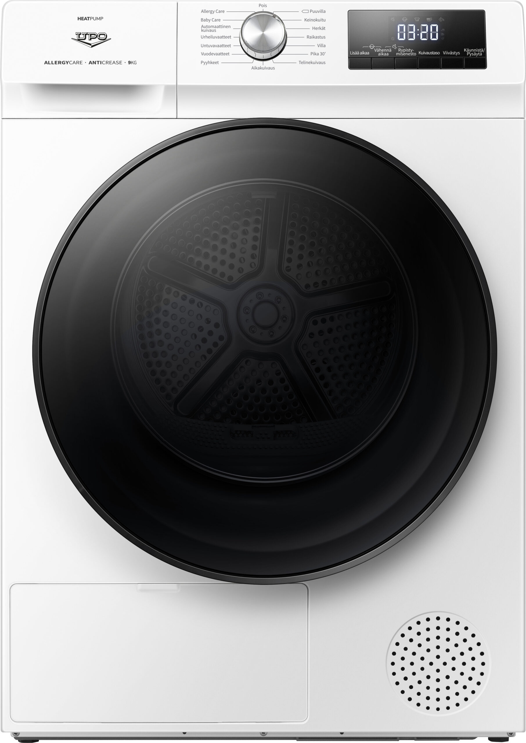 Kuivati programmid on väga mitmekülgsed, kui tekstiili on vaja kuivatada, leiate sellest tootest sobiva programmi. Puuvill, sünteetika, vill ja õrnad tekstiilid – igal neist on oma programm, mis on kohandatud parima kuivatustulemuse saavutamiseks võimalikult väikese energiatarbimisega. Samuti on olemas programmid rätikute, udusulgede, voodipesu ja spordirõivaste jaoks, mis kõik on kohandatud teie tekstiilidele parima võimaliku tulemuse andmiseks. Beebipesuprogramm on loodud spetsiaalselt beebiriiete jaoks. **Allergiaprogramm** on loodud allergeenide, näiteks osakeste või allergeenide eemaldamiseks. Õrnade ja õhukeste riiete töötlemiseks on olemas spetsiaalne kiirprogramm.****Värskendusprogrammis** lülitatakse küte välja ja tooteid ventileeritakse intensiivselt.**Villaprogramm** on lühikese kestusega ja mõeldud villast ja siidist riiete pehmendamiseks või kohevaks muutmiseks, mis tuleks tootja juhiste kohaselt täielikult kuivatada. Ajastatud kuivatus tühistab automaatse kuivatustulemuse jälgimise ja on mõeldud mitteõrna pesu jaoks. Valite soovitud aja ja trummel peatub, kui aeg on möödunud. See on mõeldud kuivatamiseks hoiuruumis ja pesu jaoks, mis talub karmi käsitsemist.