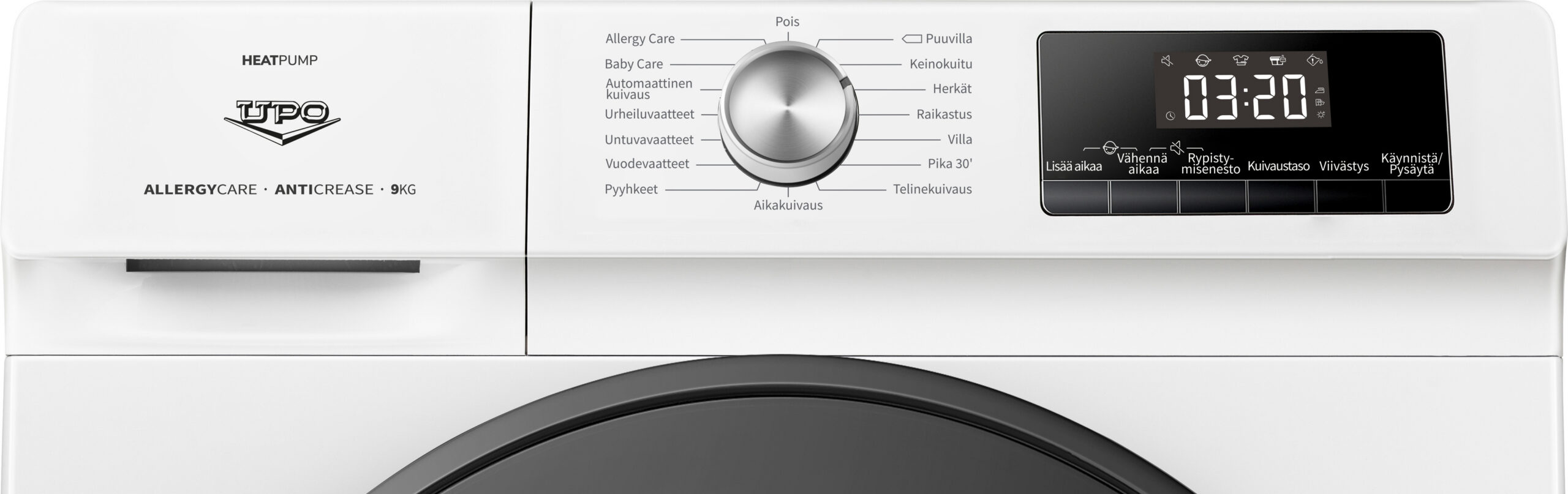 UPO KPI14S on moodne ja väga hõlpsasti kasutatav kuivati, mis kasutab uusimat soojuspumba tehnoloogiat ning sobib hästi ka väikestesse ruumidesse. Suur 9 kg mahutavus võimaldab tõhusalt kuivatada isegi suuri voodipesukoguseid ning A++ energiatõhusus tagab masina taskukohase kasutamise. Soomekeelne juhtpaneel ja selge kasutusjuhend tagavad, et saate oma uue kuivati kõik funktsioonid ja väldite kasutusvigu.