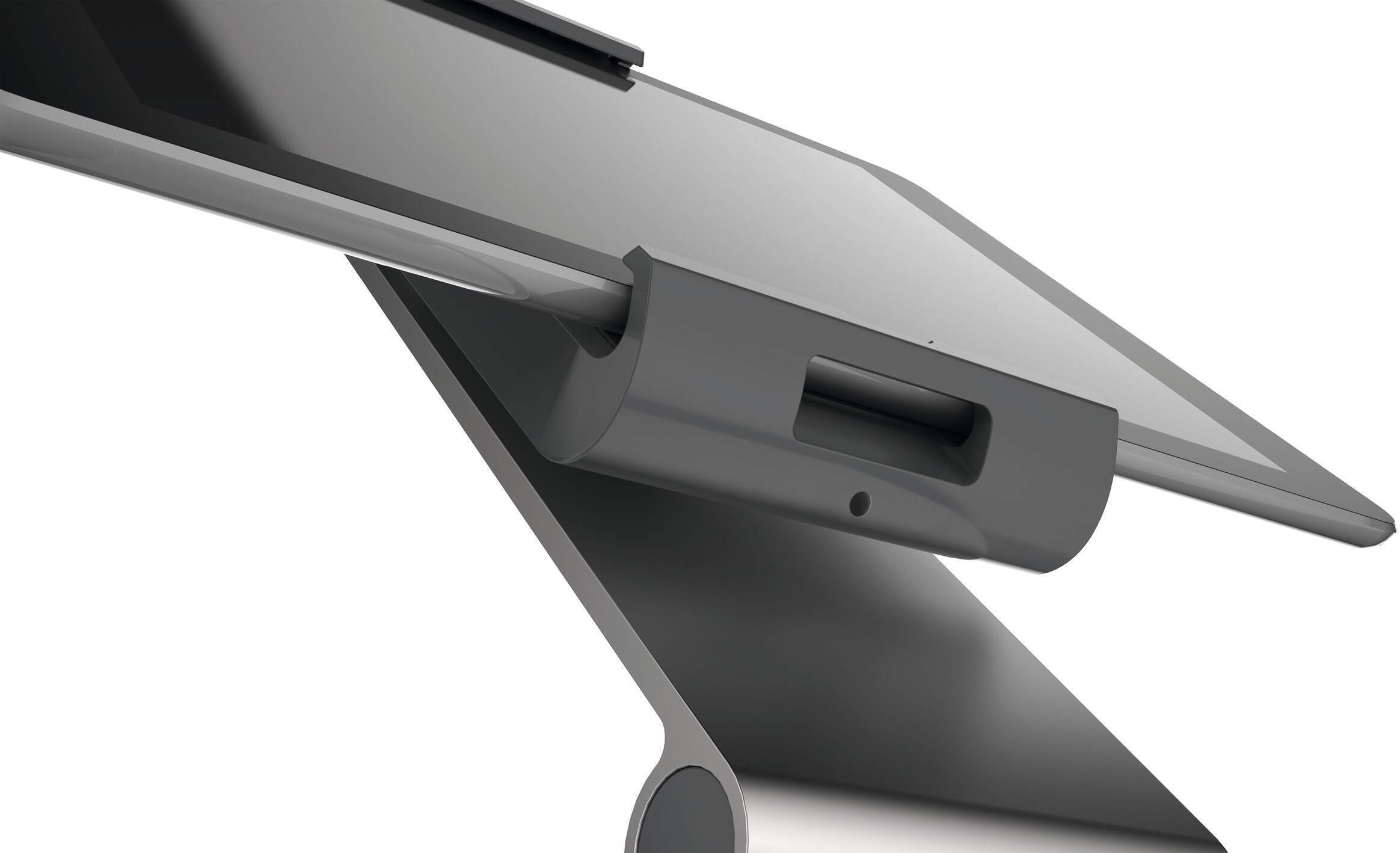 ABS-plastikust, terasest ja alumiiniumist tahvelarvuti hoidik on mugav ja võimaldab ergonoomilist töötamist, kuna tahvelarvuti asendit saab individuaalselt muuta. Tahvelarvuti saab hoidikusse lukustada, et vältida vargust.