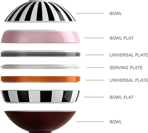 Pallikujuline La Boule on iseenesest vapustav portselanist disainese. See moodustab kahele inimesele mõeldud virnastatava lauanõude komplekti. Värvid ja tekstuurid sobivad ideaalselt näiteks Manufacture Rock lauanõude komplektiga. Kõiki esmaklassiliste portselannõude osi saab pesta nõudepesumasinas ja soojendada mikrolaineahjus.