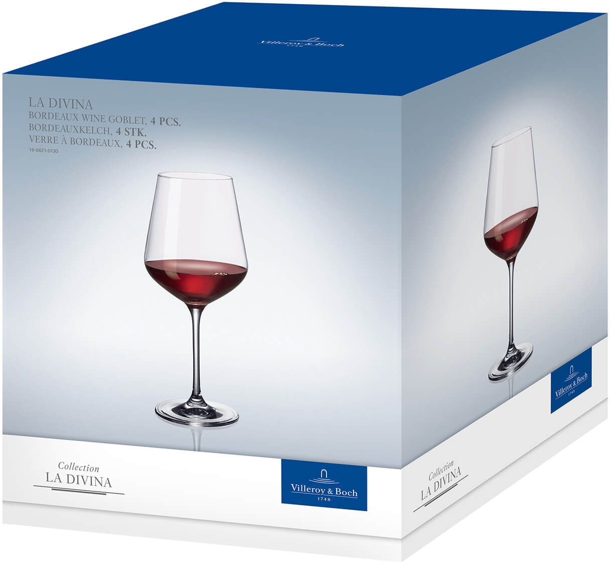 Villeroy & Bochi La Divina klaasikomplekt on stiilne ja ajatu, sobides peeneks maitseks ja elegantseteks sündmusteks. La Divina lihtne disain sobib kombineerimiseks paljude lauanõude komplektidega. Suure kausi ümar kuju rõhutab punase veini maitseid ja aroome.