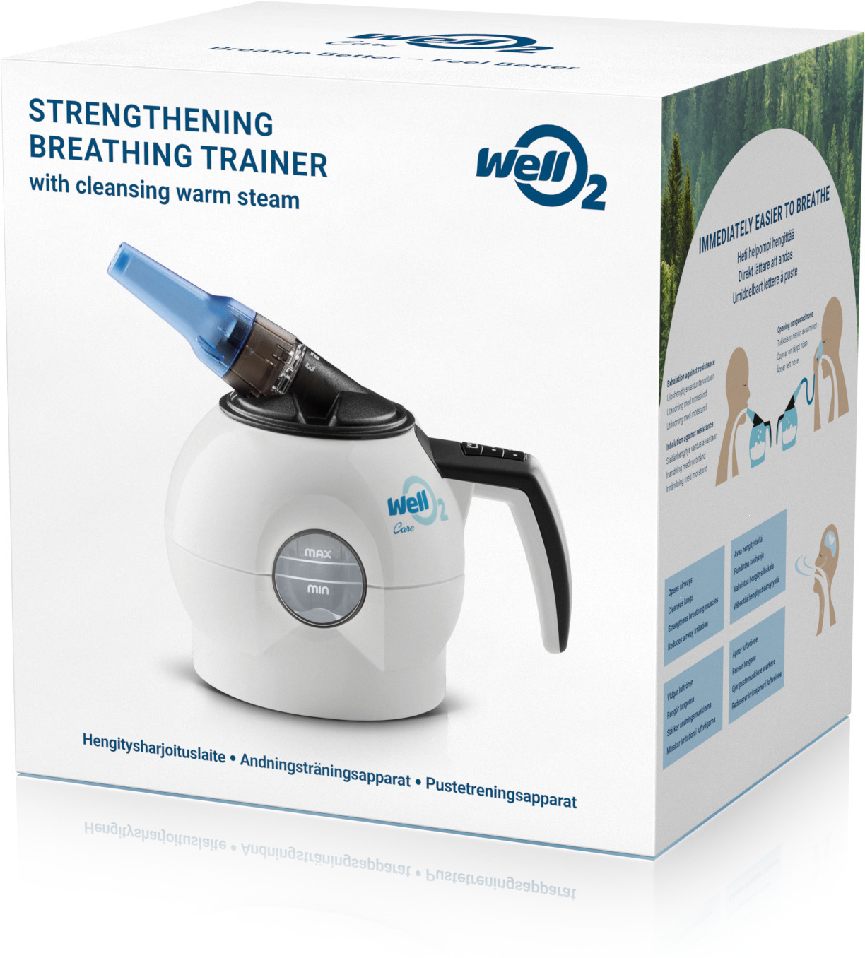 WellO2 on välja töötanud tervishoiu, heaolu ja tehnoloogia eksperdid. See uuenduslik lahendus ühendab uusimad teaduslikud uuringud ja tehnilised uuendused mitmekülgseks ja ravimivabaks vahendiks hingamisteede tervise raviks ja säilitamiseks. Selle efektiivsust on uuritud mitmetes kliinilistes uuringutes ja seda saavad ohutult kasutada kõik alates lastest kuni vanavanemateni! WellO2-e kasutab üle maailma üle 100 000 inimese! Hea hingamine on hea elu alus. WellO2 teeb hingamise koheselt lihtsamaks, et saaksite oma elu täiel rinnal elada – iga päev.
