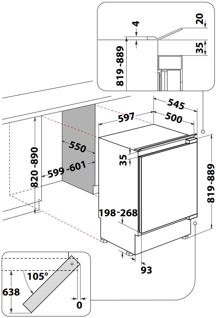 MÄRKUS! Täielikult integreeritud seade, vajab eraldi ostetavat mööbliust. Seade tarnitakse ilma mööbliukseta!