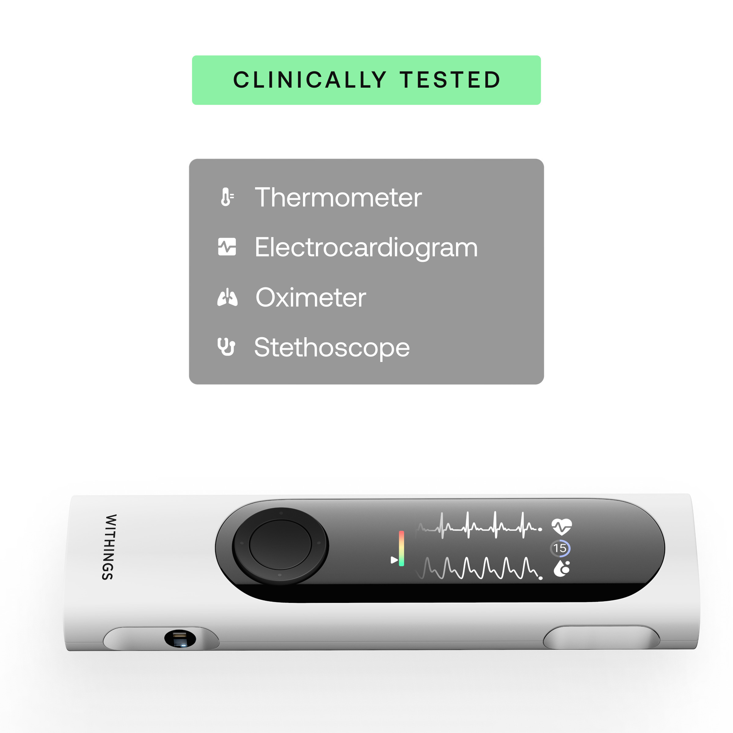 Withings BeamO on monipuolinen terveydenseurantalaite, joka yhdistää neljä lääketieteellistä anturia kompaktissa ja helposti mukana kulkevassa muodossa. Laitteella voi mitata kuumeen kosketuksettomasti, tallentaa sydämen sähkötoimintaa, seurata veren happipitoisuutta sekä kuunnella sydämen ja keuhkojen ääniä digitaalisella stetoskoopilla. BeamO soveltuu hyvin kotikäyttöön ja etävastaanottotilanteisiin, tarjoten selkeät mittaustulokset suoraan värinäytölle.