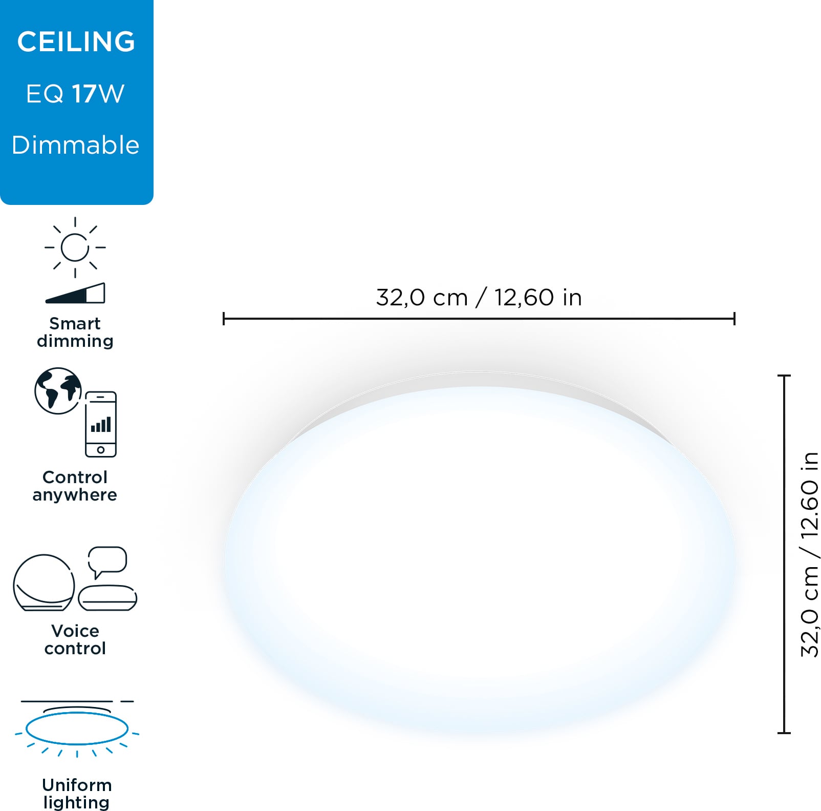 Muotoilultaan simppeli WiZ Adria -kattovalaisin sopii moderniin elämäntyyliin, moneen tilaan sekä sisustukseen. WiZ Adria kattovalaisimessa on valittavana 16 miljoonaa värivaihtoehtoa haluamallasi efektillä tai viileän valkoisen sävyisellä valolla. Voit luoda ajastuksia lampun syttymiselle ja sammumiselle päivittäisen tai viikottaisen rutiinisi myötä, komentaa valoja älylaitteellasi tai äänellä ja sinulla on mahdollisuus etäohjata valojasi vaikka olet poissa kotoa.