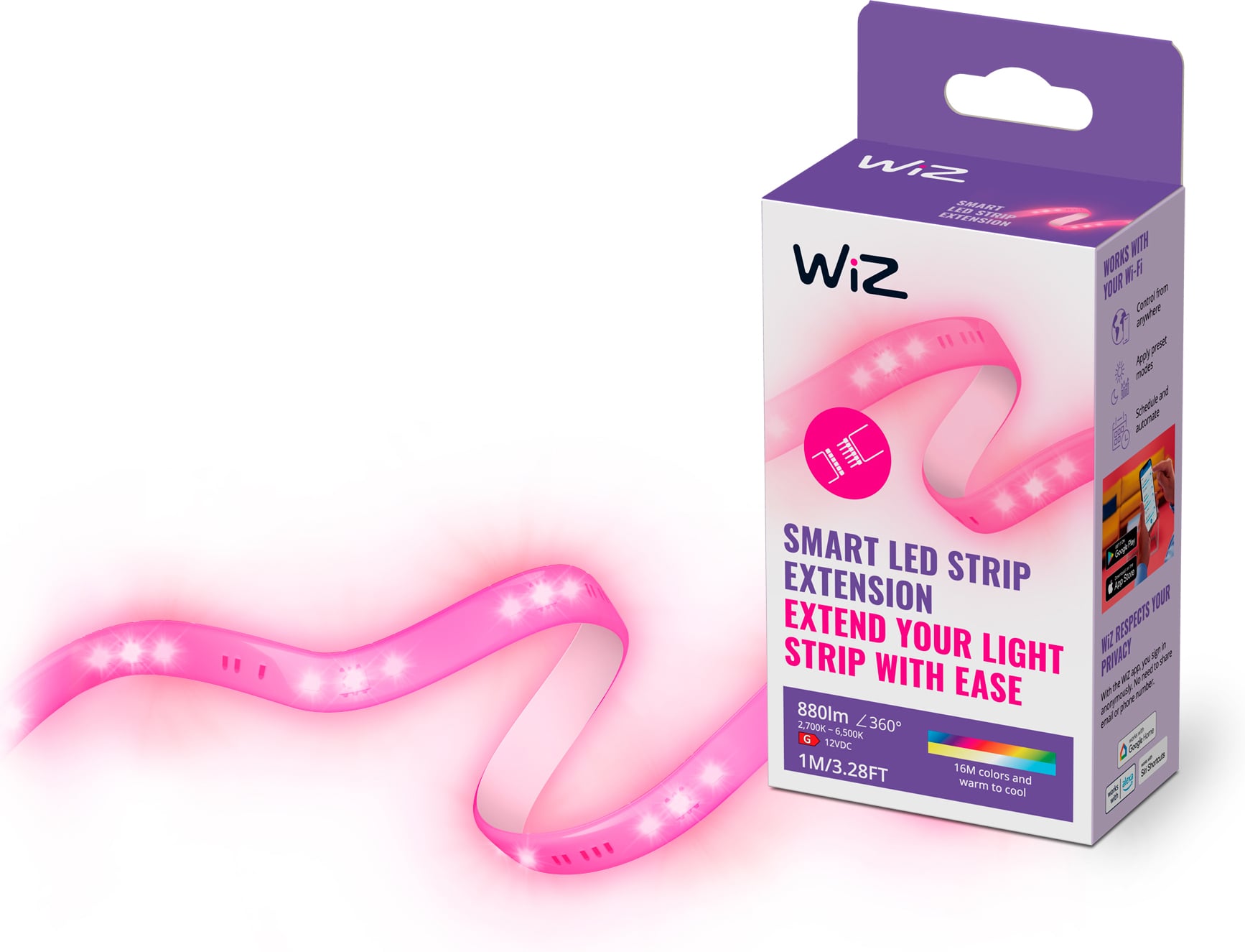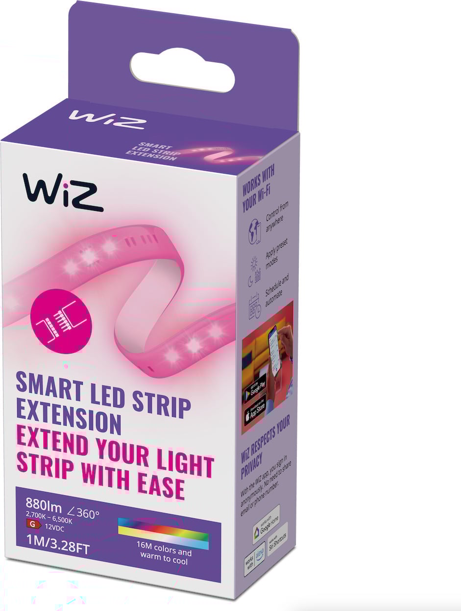 WiZ täisvärvilise LED-riba 1-meetrise pikendusdetailiga saate oma WiZ-riba hõlpsalt pikendada. WiZ valgusriba maksimaalne pikkus on 10 meetrit.