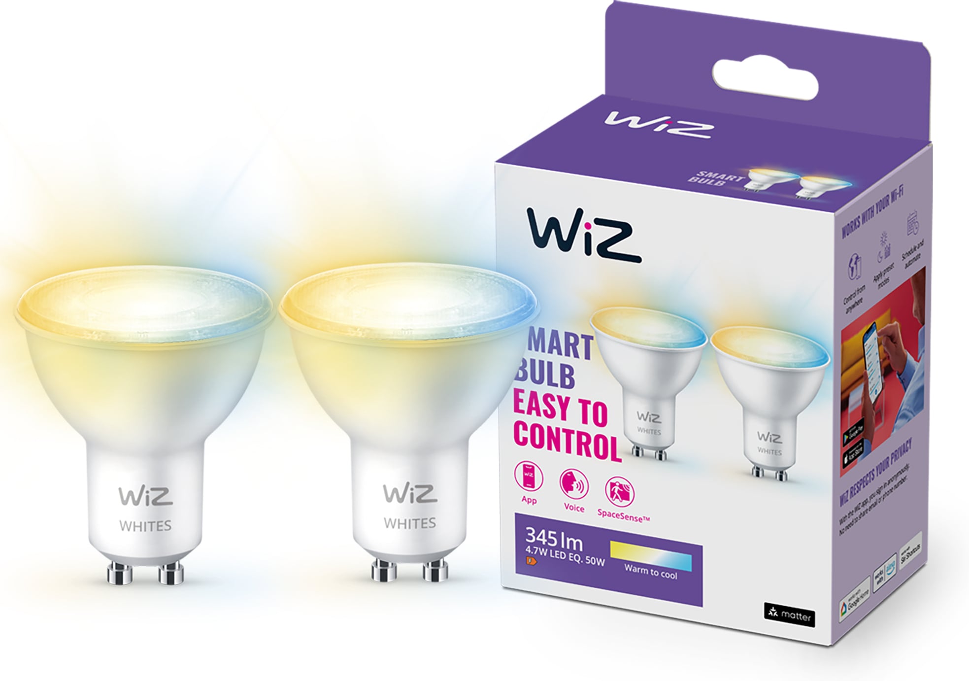 WiZ nutikas pirn, GU10, valge valguse varjundid, Wi-Fi, 2700-6500 K, 345 lm, 2 tk pakis