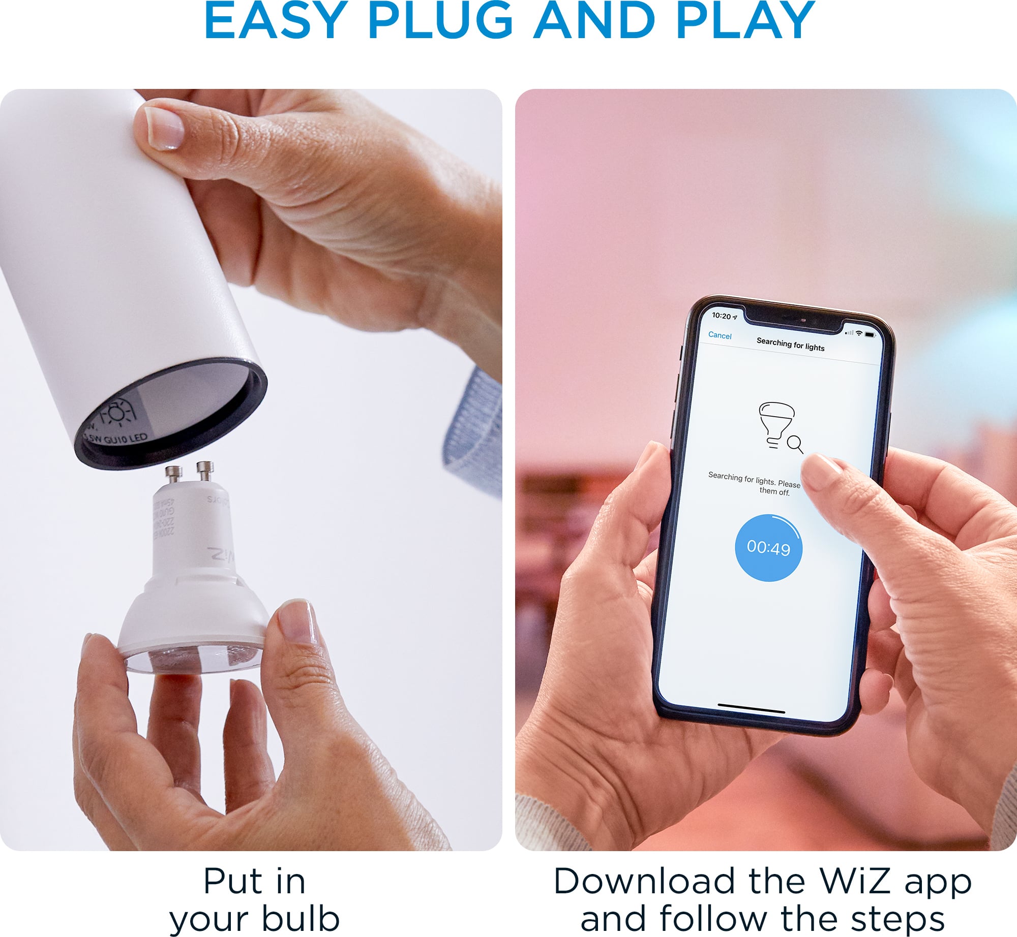 Nautige WiZ muudetava valge valgusega nutikate pirnide sooja ja jahedat valget valgust. GU10-sokliga kohtvalgustite värvitemperatuuri saab reguleerida ning need sobivad süvistatavatesse ja kohtvalgustitesse, pakkudes kvaliteetset LED-valgustust.