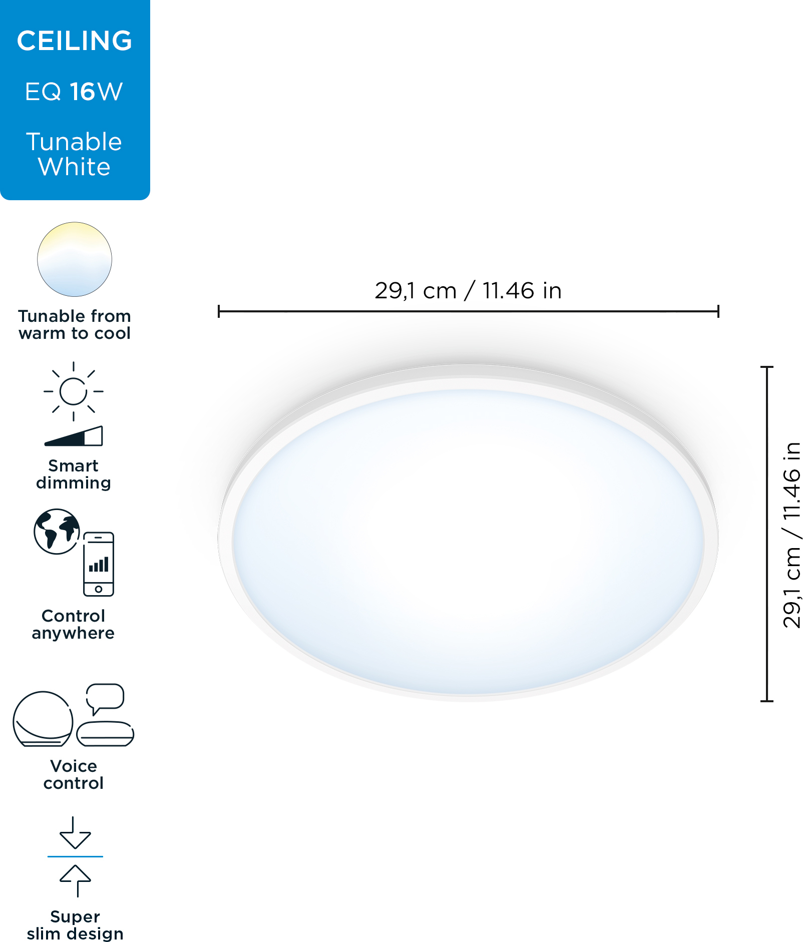 WiZ SuperSlim on nutikas laevalgusti, mis toob teie koju valge valguse, nii sooja või jaheda, kui soovite. Valgustuse juhtimine on lihtne tasuta ja kasutajasõbraliku WiZ rakenduse abil. Valgustust saab juhtida ka nutitelefoni häälkäsklustega. WiZ automatiseerib teie kodu valgustuse, mis muudab ka teie igapäevase rutiini lihtsamaks. WiZ töötab teie olemasoleva WiFi-ruuteriga ilma sillata. Ühendage uus valgusti pistikupessa ja laadige alla WiZ rakendus.