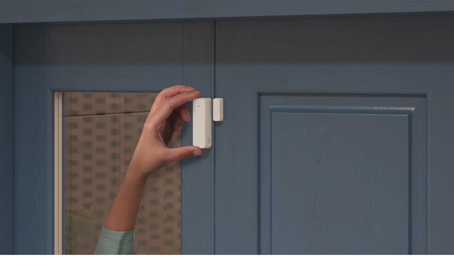 WiZ-i uksesensorit saab kaasasoleva teibi abil hõlpsalt kinnitada mis tahes sissepääsu või aknaraami külge teie kodus. Seadme töötamiseks võivad anduri vastasküljed olla üksteisest maksimaalselt 20 mm kaugusel.