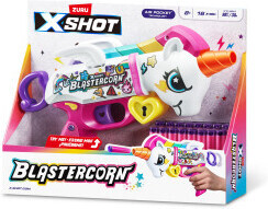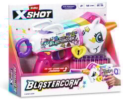 Esittelyssä X-Shot-perheen uusin jäsen: Blastercorn! Huima ase on on saatavana yksisarvisteemaisella kuorella, joka lisää sen lumoa ja leikkisyyttä seikkailuissasi! Tykitä 16 Air Pocket Technology -vaahtoammusta muutamassa sekunnissa Blastercornin helpon uudelleenlatauksen avulla.