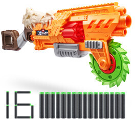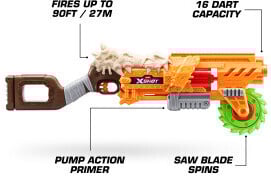 Voita taistelu X-Shot Insanity HorrorFire Doomsday -blasterilla. Laitteen pyörivä sahanterä käynnistyy aina, kun lataat aseen uudelleen pumppaamalla. Sisältää 16 Air Pocket Technology -ammusta, jotka lentävät jopa 27 metrin päähän!