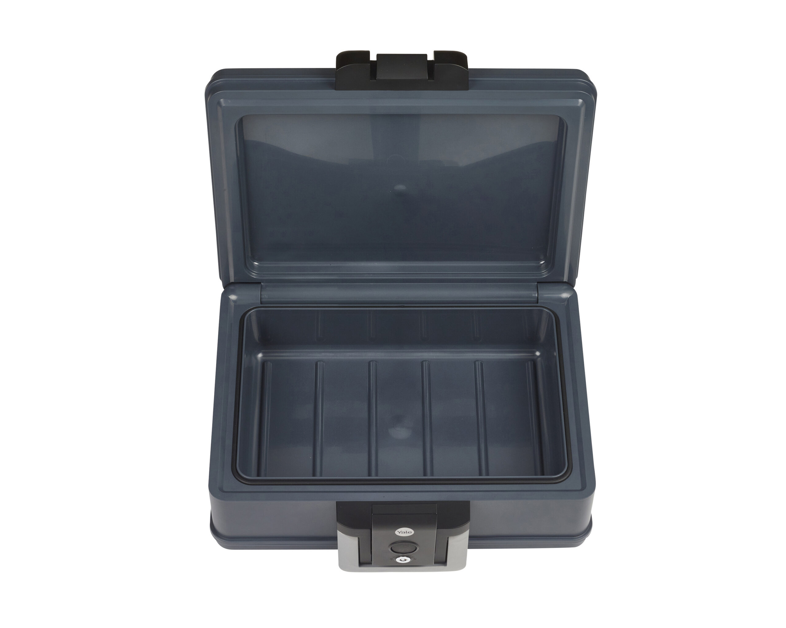 Keskikokoinen säilö sopii hyvin A4-kokoisten asiakirjojen, passien ja digitaalisten tallennusvälineiden, kuten kovalevyjen ja USB-muistien, säilytykseen. Sisäänrakennettu kantokahva helpottaa säilön siirtämistä ja kuljettamista tarpeen mukaan.
