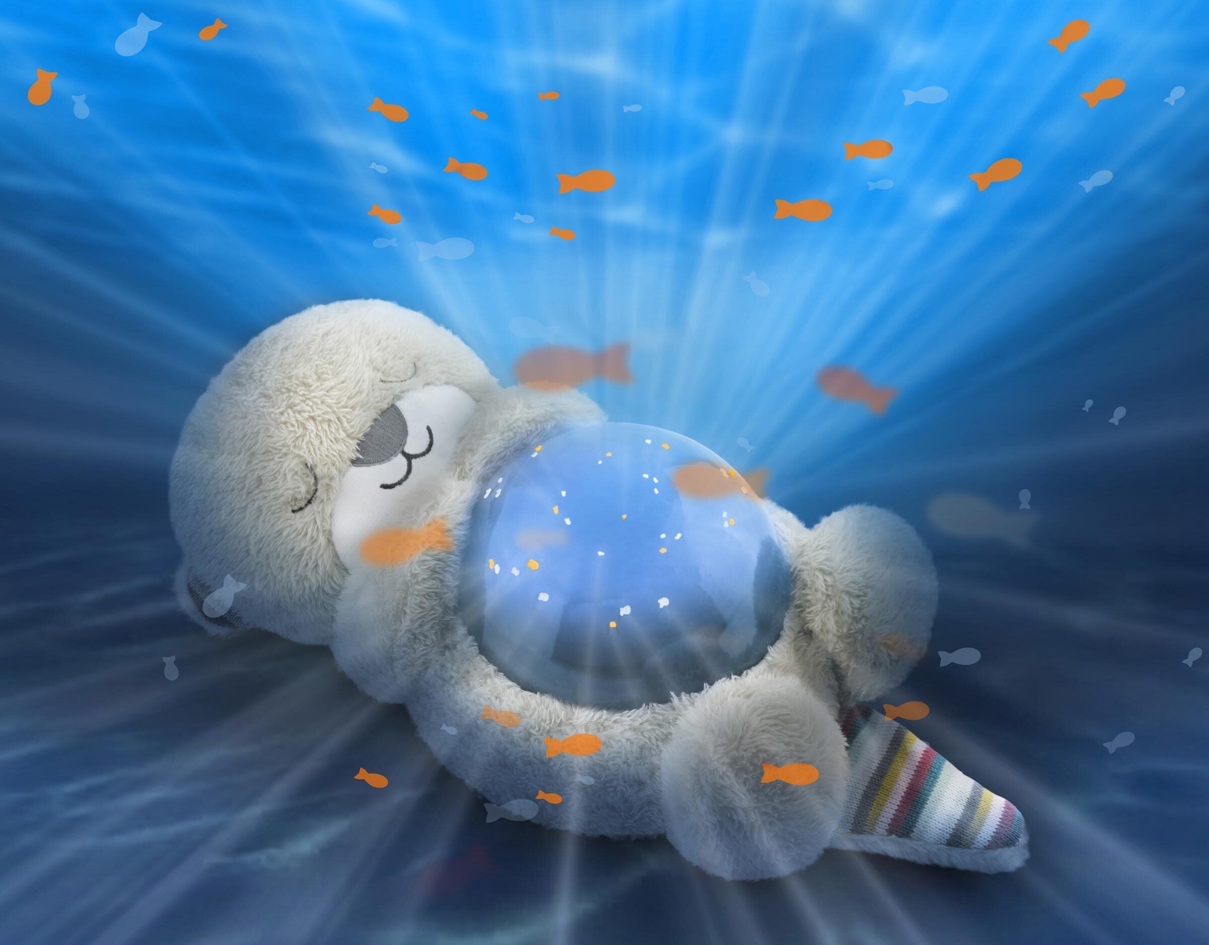 Zazu saarmas Otto muudab teie lapse toa maagiliseks veealuseks maailmaks, kus lained liiguvad ja laes ujuvad kalad. Saarmas ühendab ka rahustava merekohina projektsiooniga, mis uinutab teie pisikese lõpuks magama.